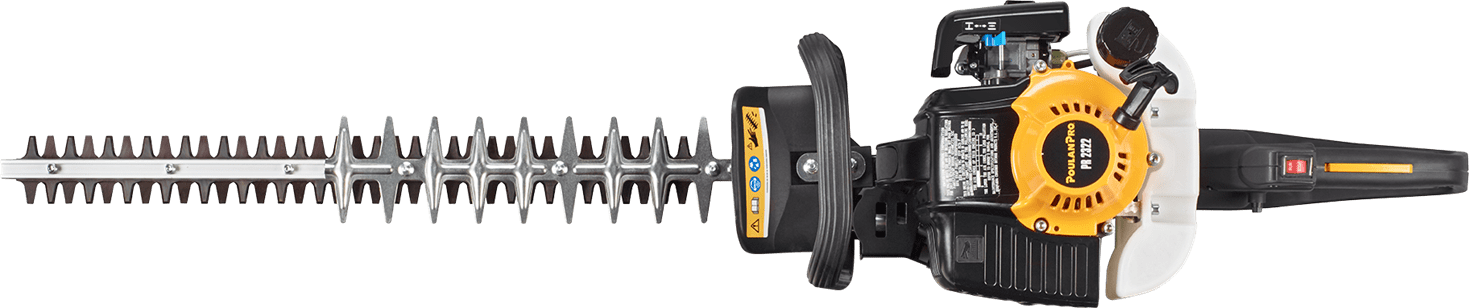 Stainless steel dual-sided serrated blades cut swaths up to 22” wide and limbs up to 1” diameter.